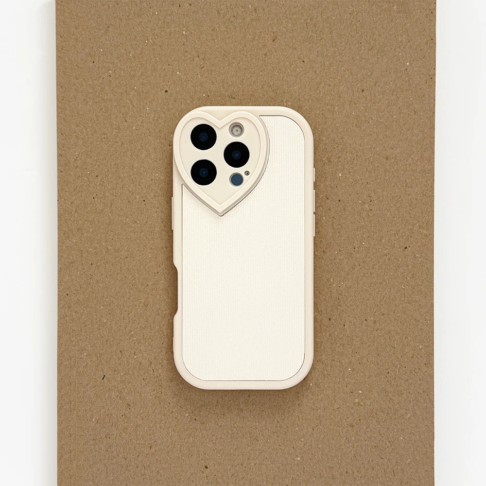 Cream Ribbed Heart Camera Phone Case